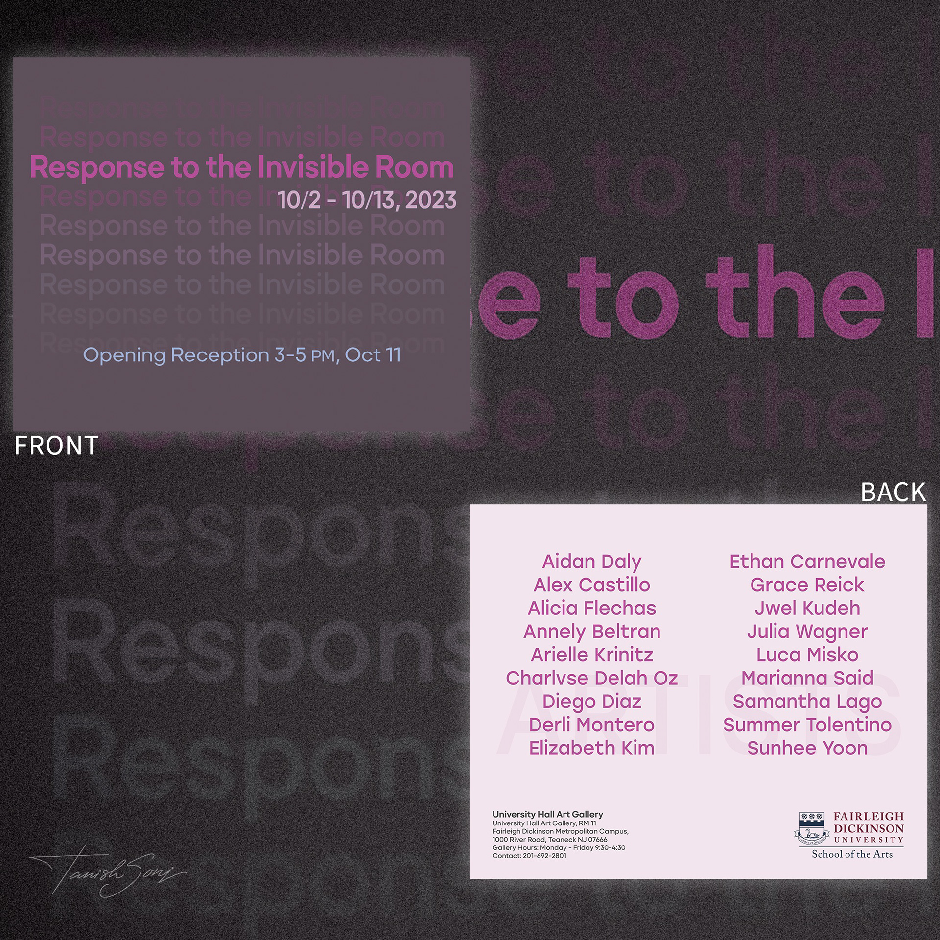 This postcard translates the exhibition identity into a compact format. Layered typography on the front builds visual depth, while the back presents artist names with clean hierarchy. The design remains bold, minimal, and instantly recognizable.