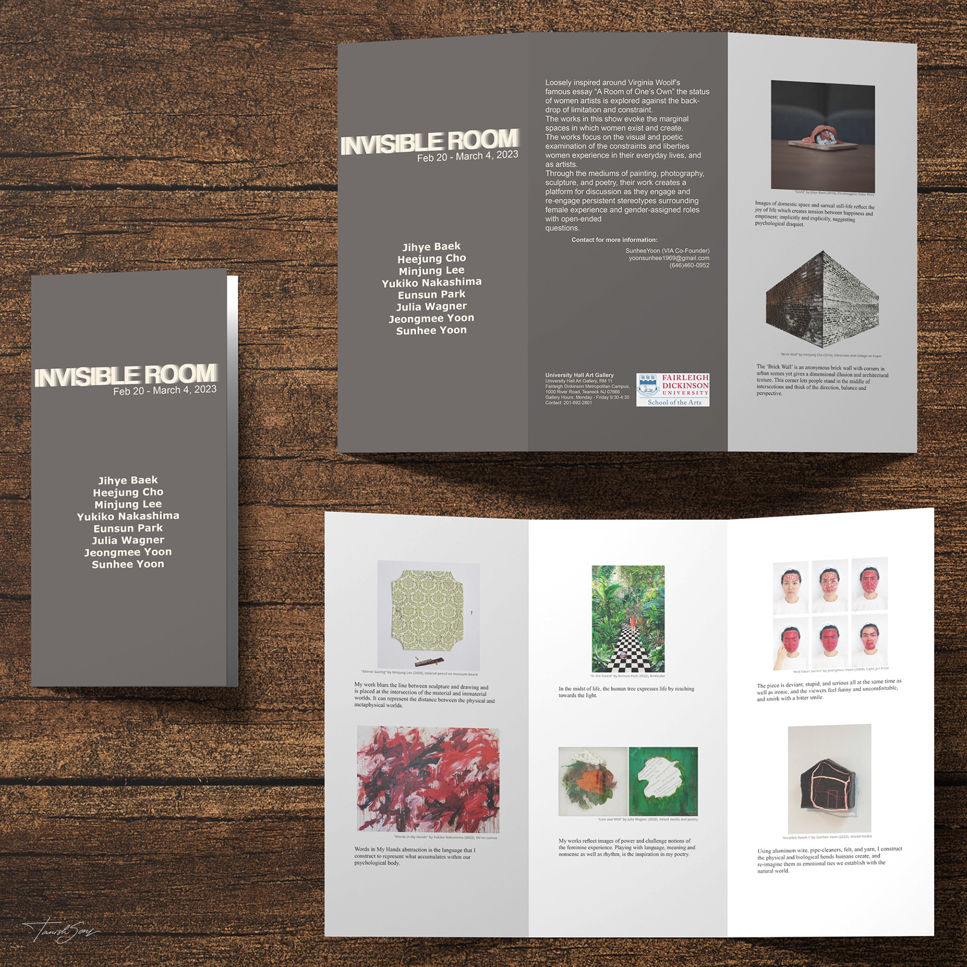 This brochure extends the visual identity of Invisible Room into a clean, editorial format. A muted palette and restrained typography create a contemplative tone, while a balanced layout of imagery, text, and white space ensures clarity and focus throughout.