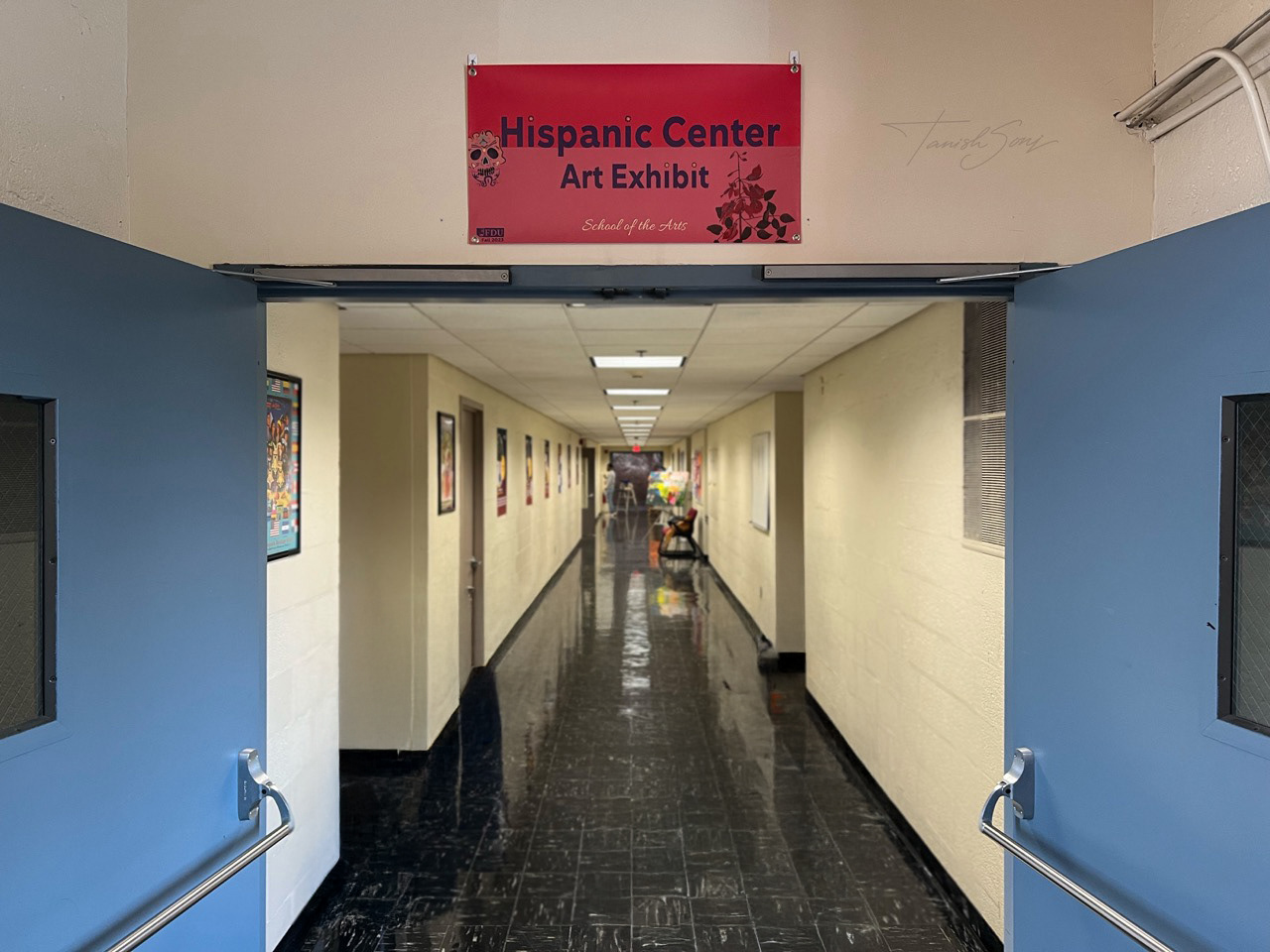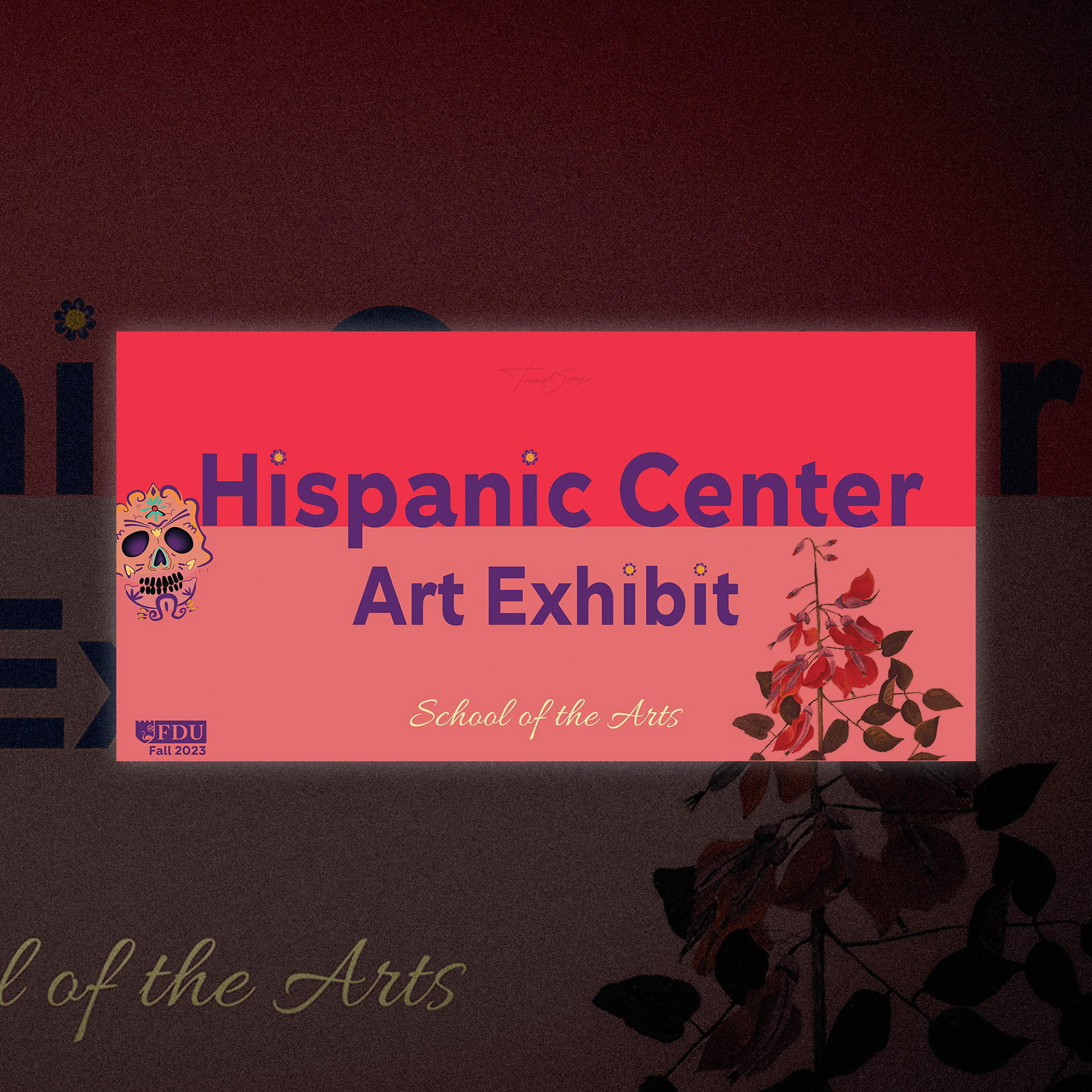 Designed to establish a clear identity for the Hispanic Center Art Exhibit, this signage uses bold typography, rich red tones, and cultural motifs to create strong visual presence. The layout ensures visibility at a distance while seamlessly aligning with the university’s brand.