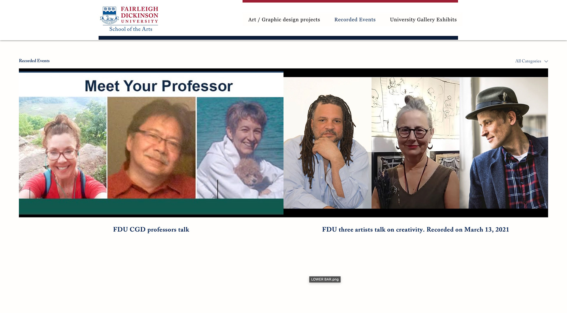 This section integrates embedded video content to create an interactive experience. Featured talks such as faculty discussions and artist lectures are presented in a clean multimedia layout. The page functions as a digital archive of academic dialogue and creative exchange.