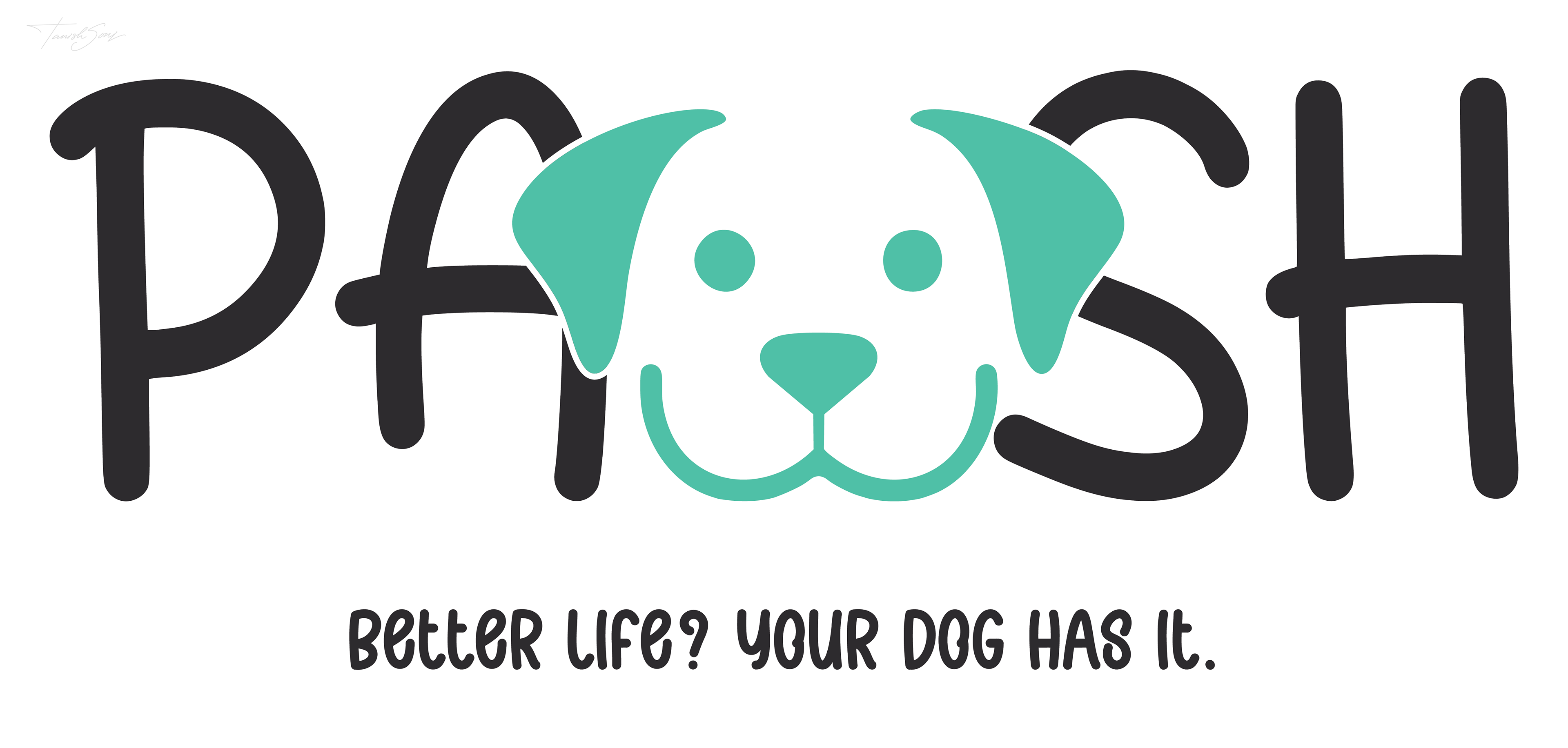 The Pawsh logo redefines the letter “W” as a minimal dog face, placing the brand’s purpose at the center of its form. Soft teal accents add warmth, while bold black letterforms maintain clarity and strength. The result is a distinctive, modern identity that expresses an elevated lifestyle designed exclusively for dogs.