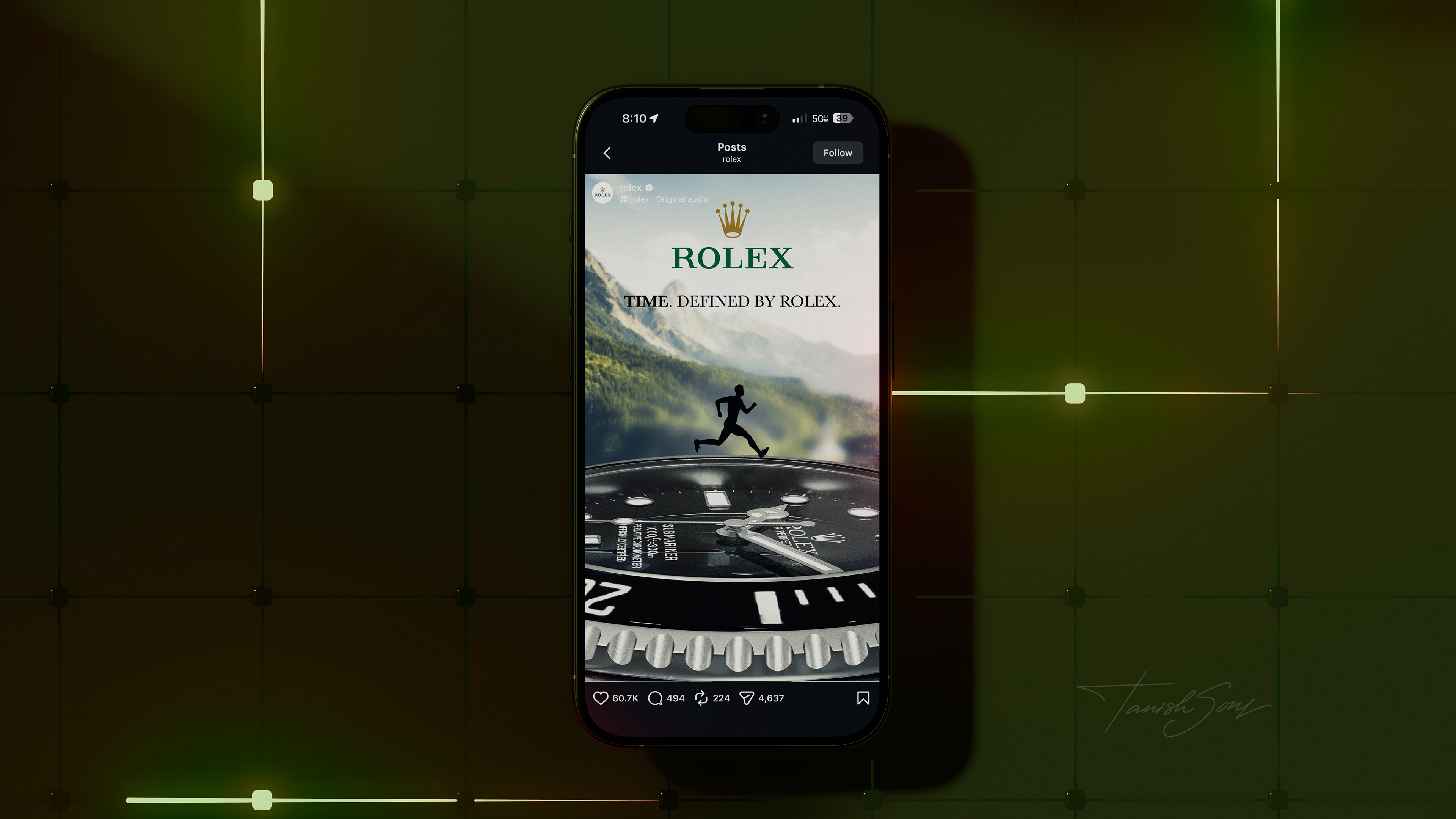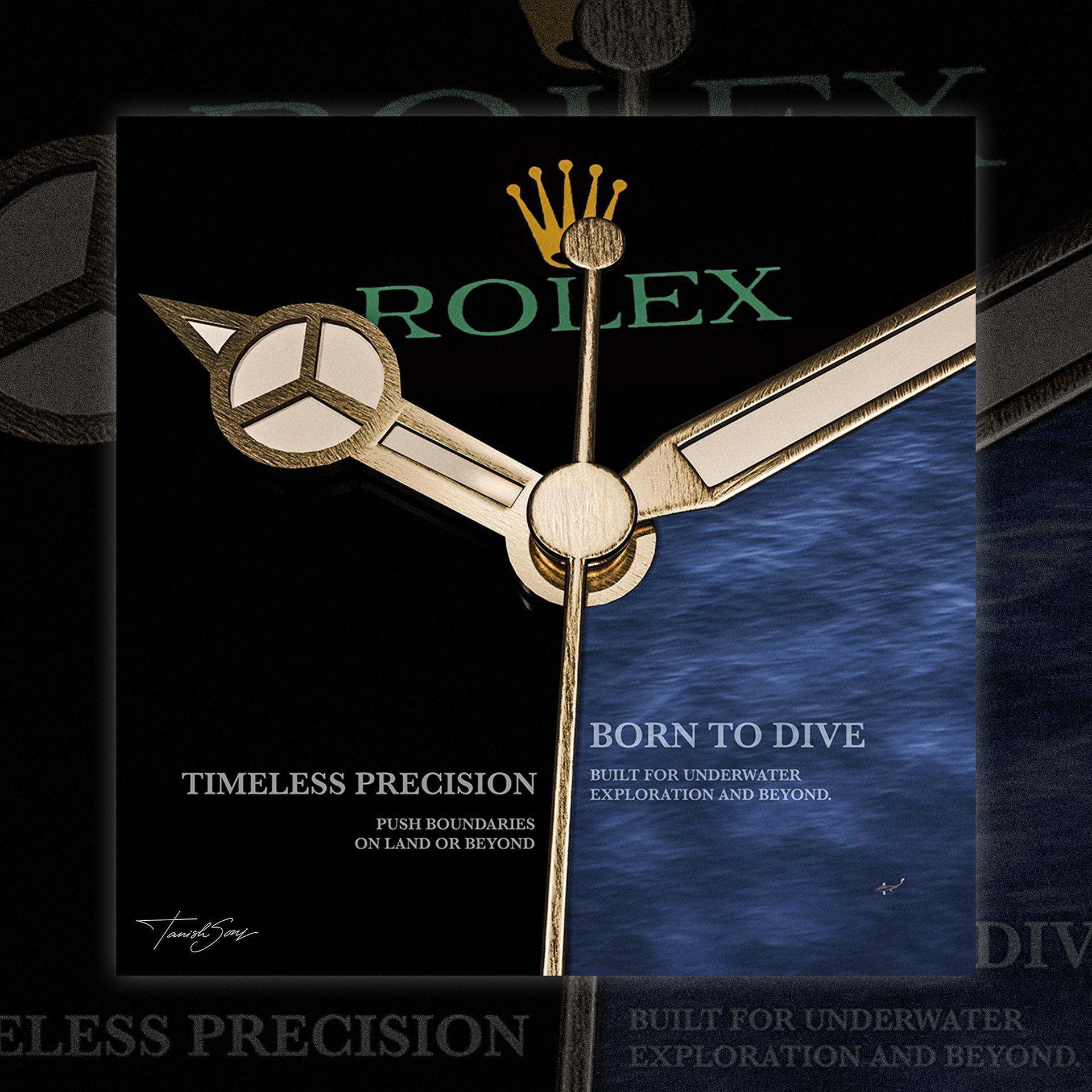 This concept project presents the Submariner through a series of refined social media visuals that emphasize its heritage and underwater mastery, along with a bold collaboration idea that extends its legacy into a new performance driven narrative.